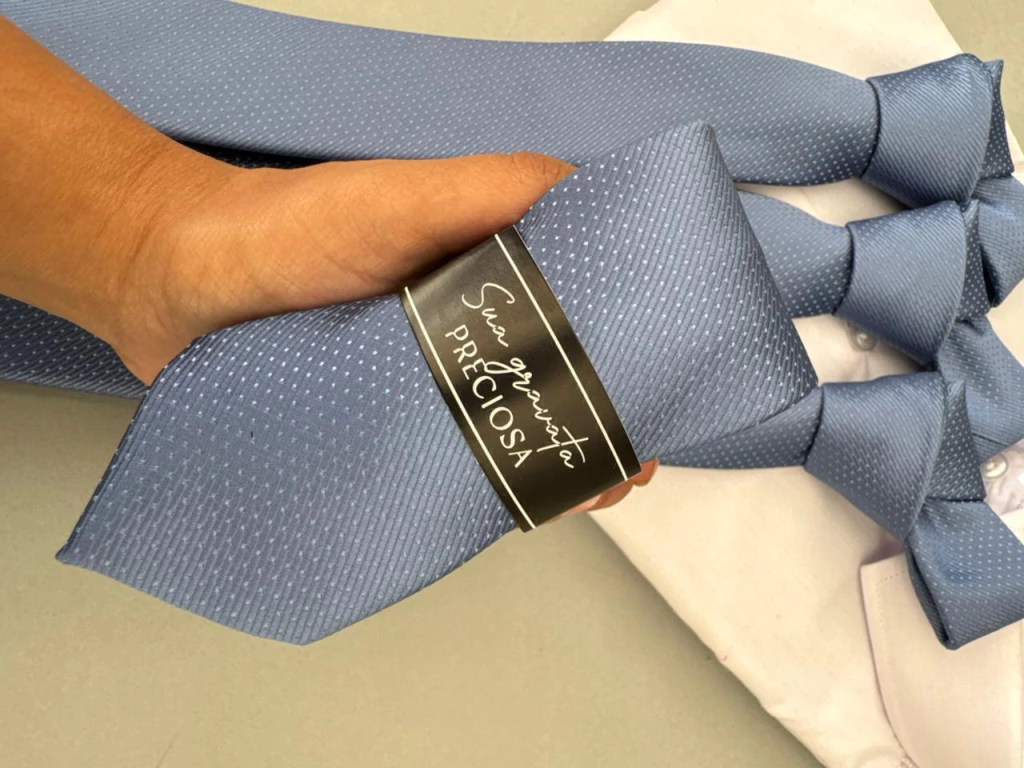 É um toque encantador que completa o visual em cerimônias de casamento. Confeccionado com tecidos delicados, iguais aos das gravatas, o laço é habilmente trabalhado para criar uma peça elegante e romântica.